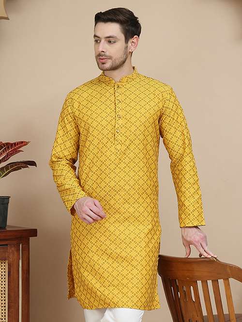 yellow solid long kurta