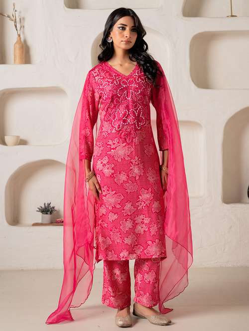 women solid with work three quarter sleeve kurta pant with dupatta set