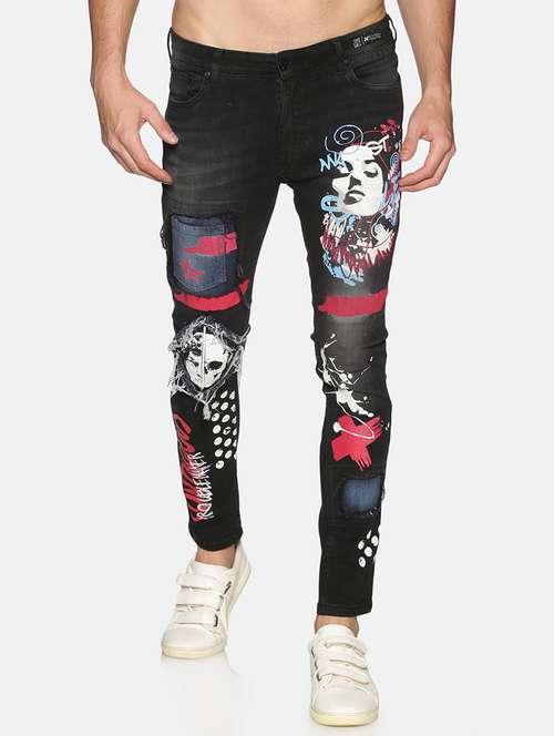 black printed washed denim jeans