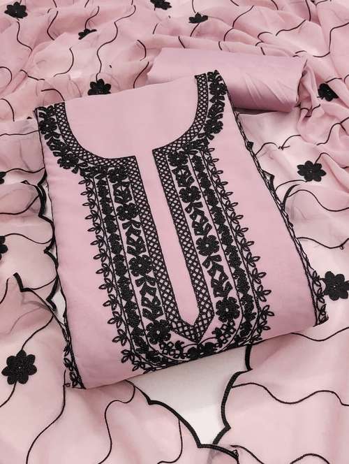 women solid with work embroidered unstitched suit set