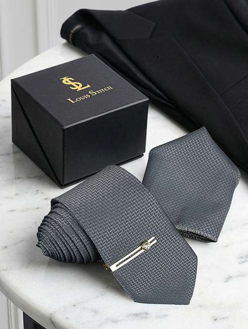 men neck tie set with pocket square & cufflinks brooch tie pin