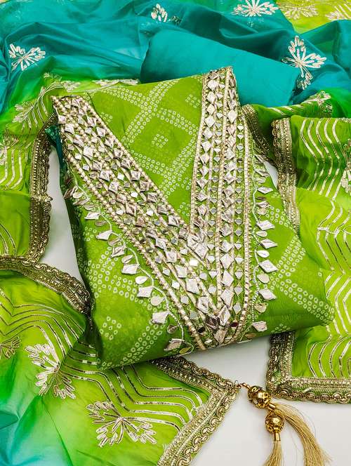 women bandhani printed unstitched suit set