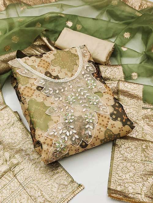 women printed embroidered unstitched suit set