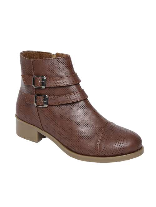 brown  faux leather ankle boot