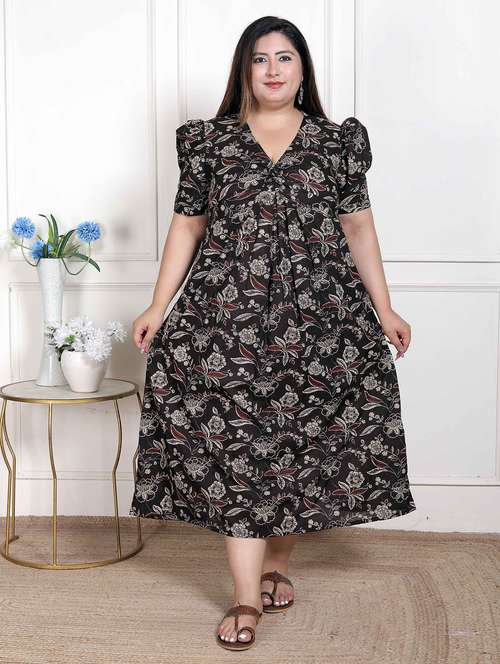 women printed puff sleeve a-line dress
