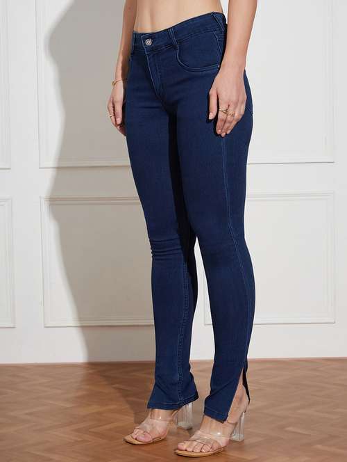 women solid high rise skinny fit jeans