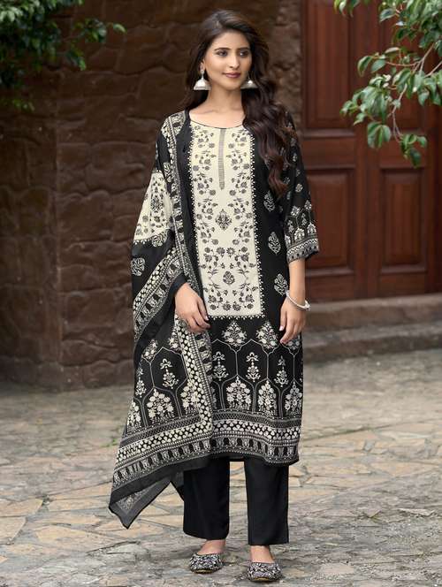 women floral printed three quarter sleeve kurta pant with dupatta set