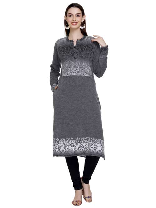 grey self design woolen kurta