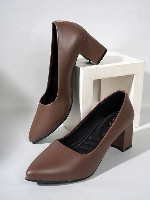 women solid block heel pump