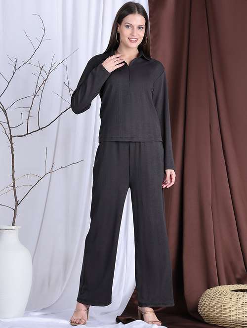 women solid top and trouser co-ord set