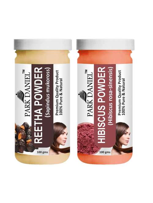 park daniel pure & natural reetha powder & hibiscus powder combo pack of 2 bottles of 100 gm (200 gm )