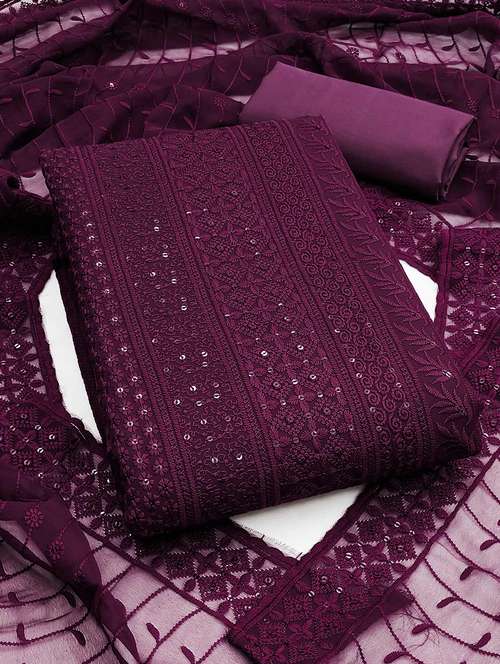 embroidered unstitched suit set with dupatta