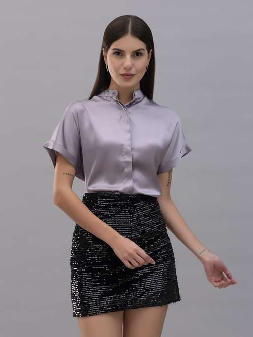 solid lavender satin casual shirt