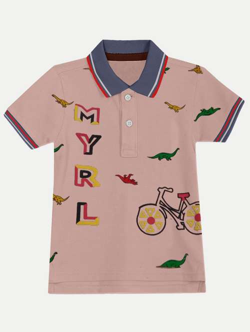 boys quirky print nude colored polo t-shirt