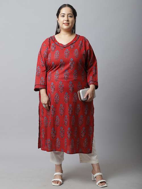women plus size floral printed straight kurta
