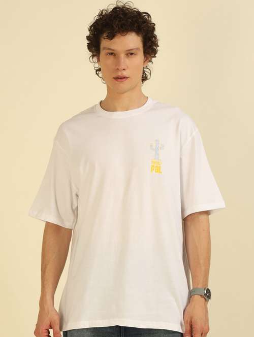men front & back printed round neck oversized t-shirt