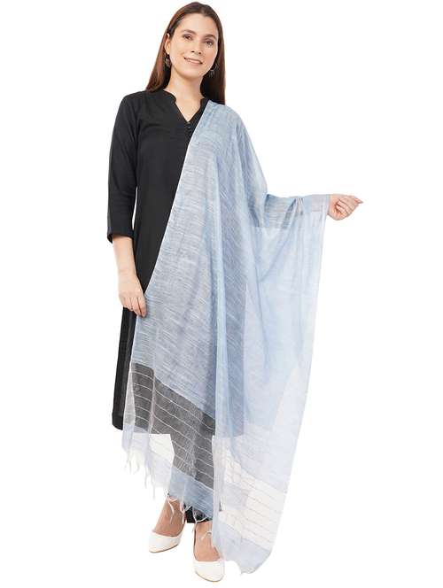 women dupatta with self linen like body with tiny sequins highlighting the edges