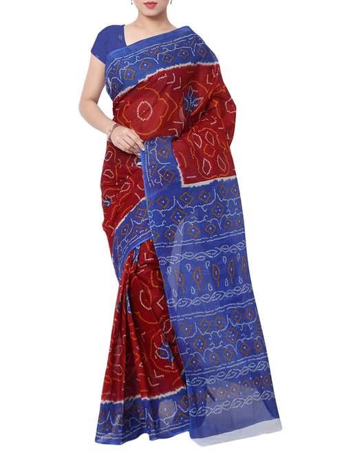 maroon cotton bandhani saree with blouse