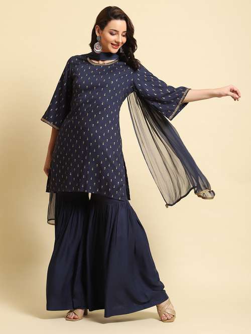 women printed kurta sharara set with dupatta