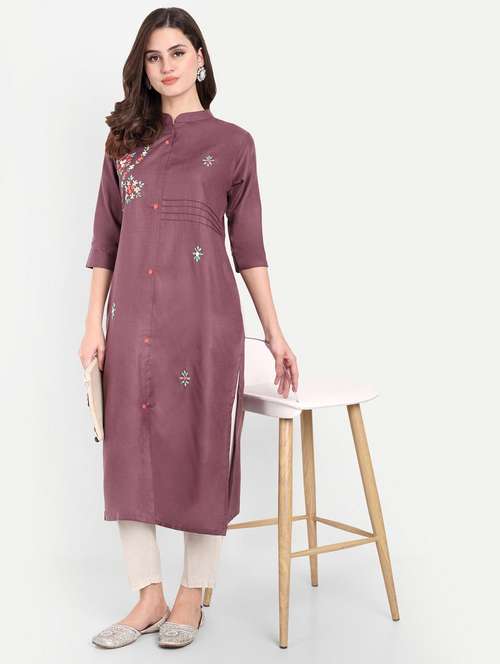 women embroidered three quarter sleeve kurta