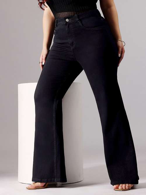 women solid high rise bootcut jean