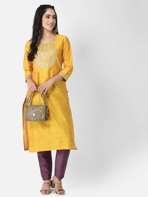 women embroidered three quarter sleeve straight kurta