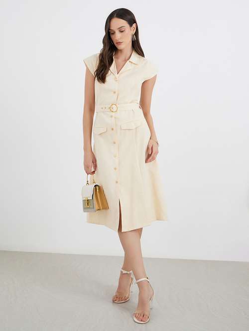 women solid lapel neck sleeveless shirt dress
