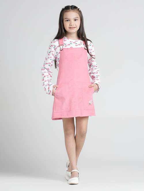 girls solid corduroy dungaree dress