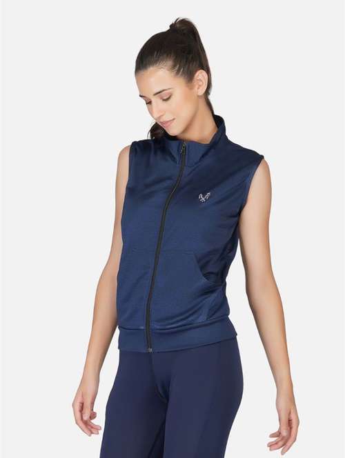 navy blue solid stand collar regular jacket