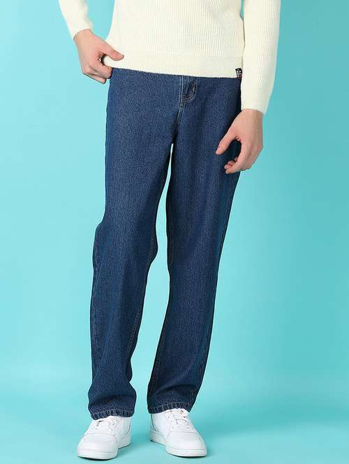 men mid rise straight fit plain denim jean