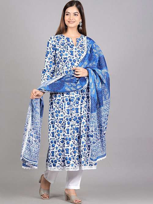 women floral three quarter sleeve kurta pant with dupatta set