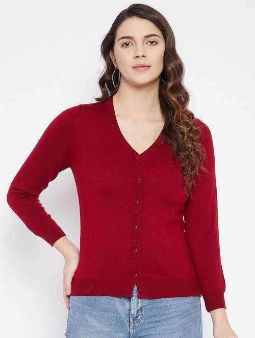 maroon solid woolen cardigan