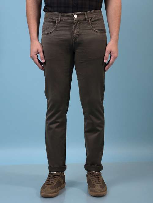 - » men brown mid rise full length jeans