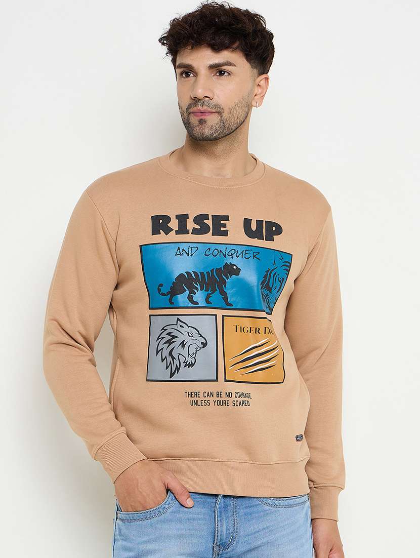 - » men round neck front print sweatshirt