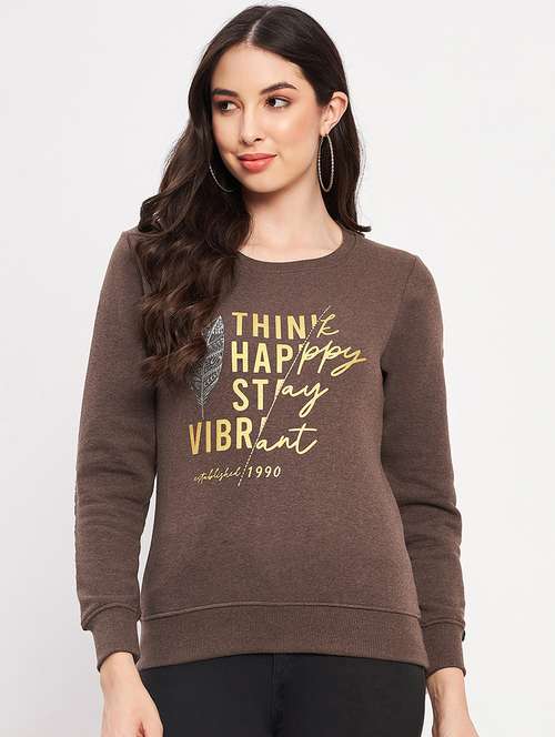 - Recreate your winter style with the all new frisky design options of sweatshirts available in brown shades and hues to brighten up the chilly days.