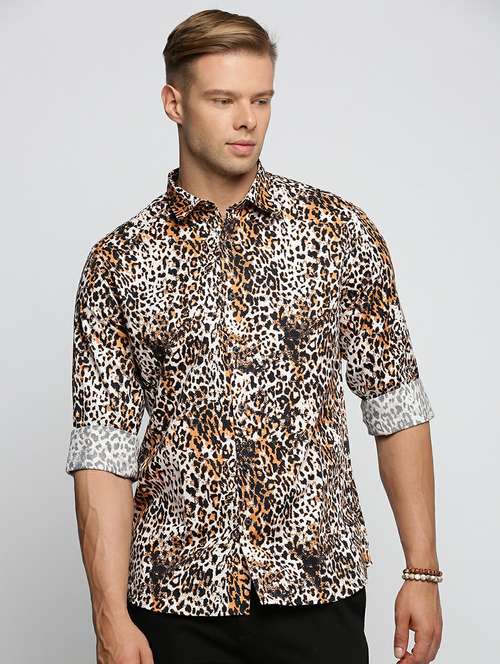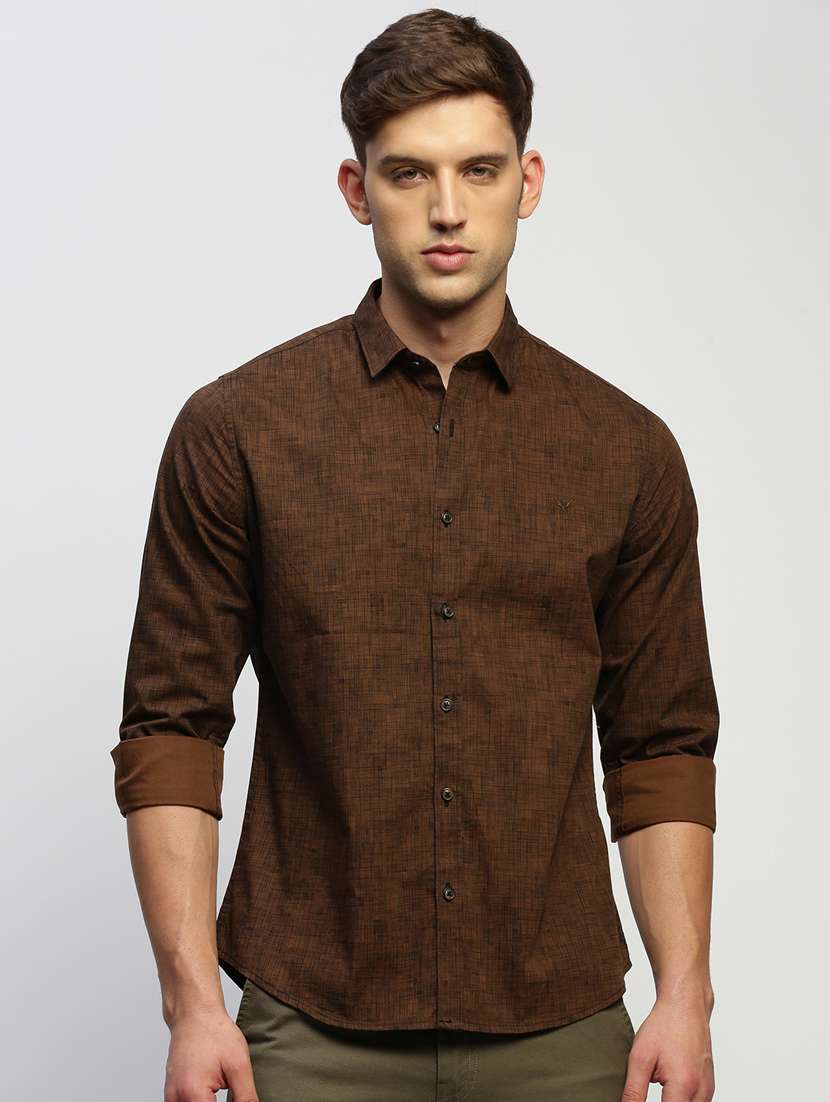 - » men brown cotton blend casual shirt