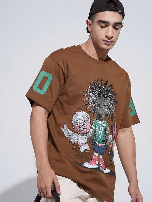 SHOWOFFFF Edition Men's Graphic Print Brown Short Sleeves Round Neck Relaxed Fit T-Shirt