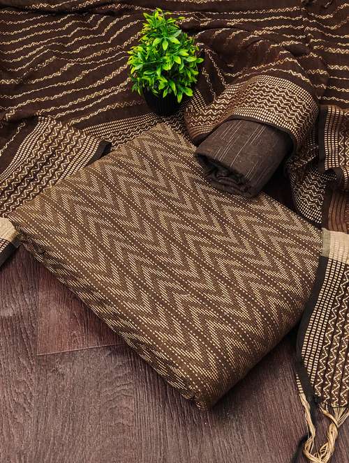 - Look ultra gorgeous in unstitched suits from Manvaa and grab these beautiful suits in brown colour.