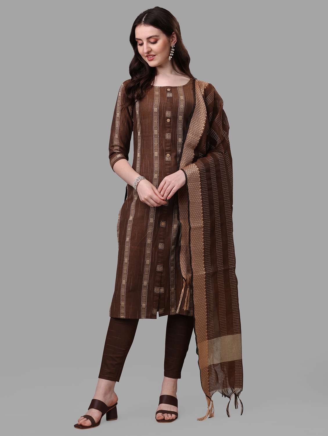 brown colored kurta pant set