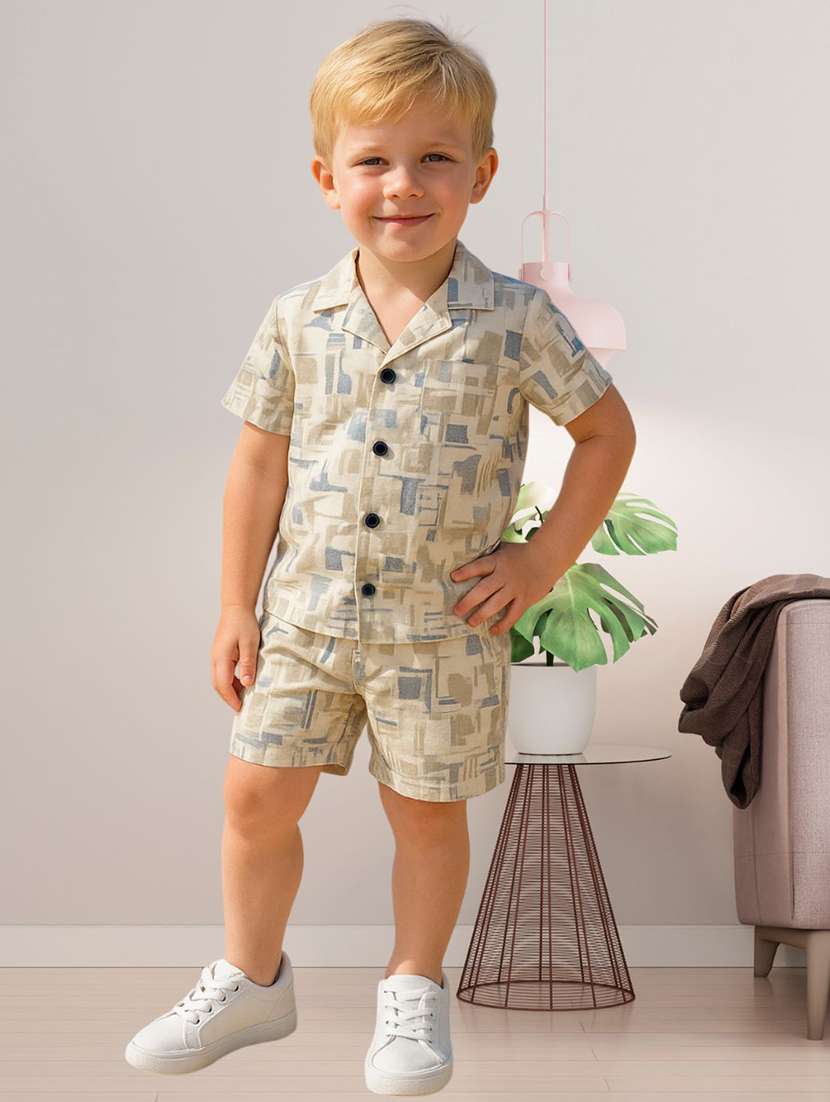- » boys printed shirt & shorts co-ords set