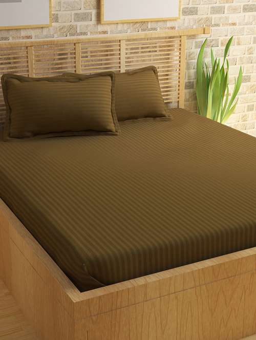 - » self striped satin plain king bedsheet with 2 pillow covers