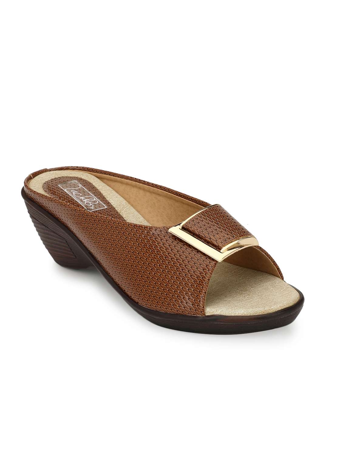 - » zachho chocolate imported faux leather self print design tpr 2.5 slip on wedges