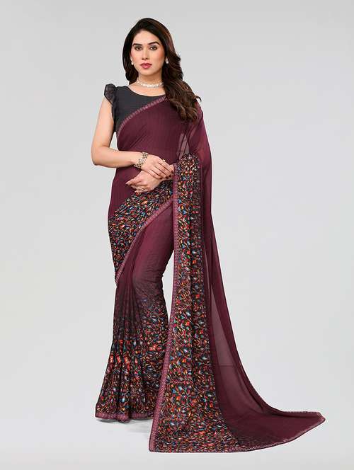 This maroon printed georgette saree is perfect for women who want a blend of comfort and sophistication in their everyday wear. The rich color, combined with the lace border, ensures you look elegant while feeling comfortable throughout the day. Whether for work or casual events, this saree is a versatile choice for any occasion.Pair with a solid blouse in contrasting shades like cream, black, or gold. Minimal accessories will complement the saree’s graceful appearance.