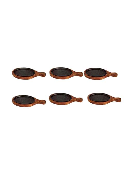 skykey wooden oval sizzler with handle/racket, 15 and 7-inch -6 pieces