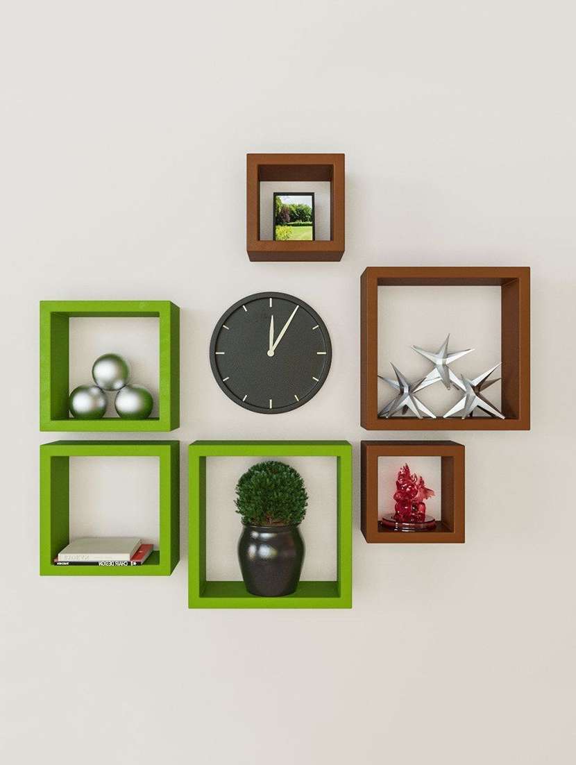 - » square with d��cor your home wooden wall shelf set 6 - brown - green