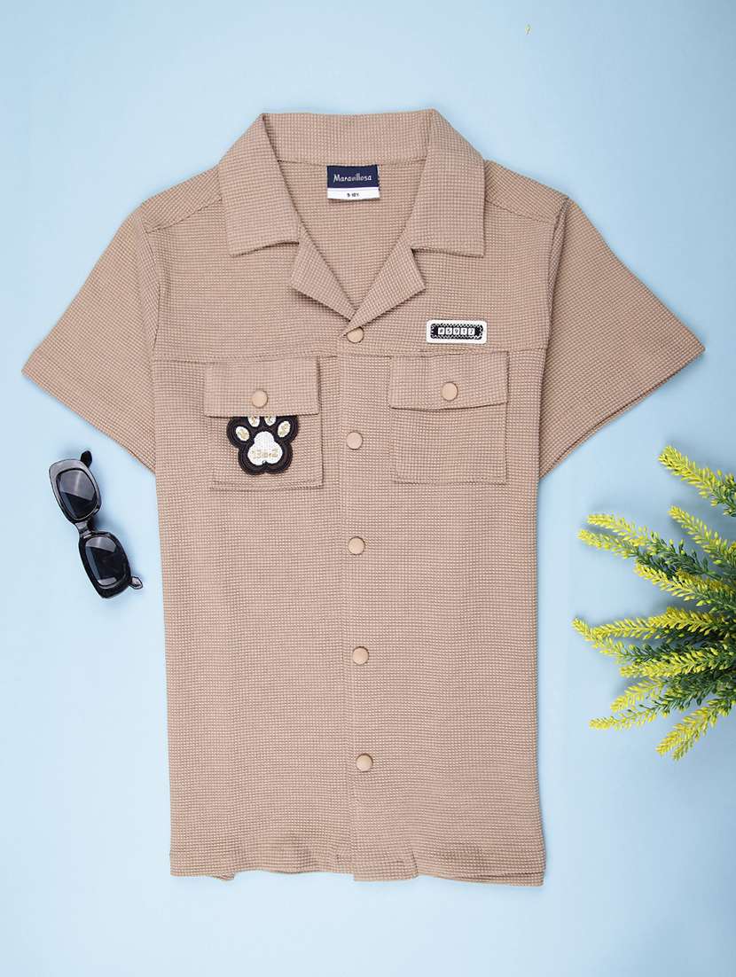 boys solid cuban collar short sleeve shirt