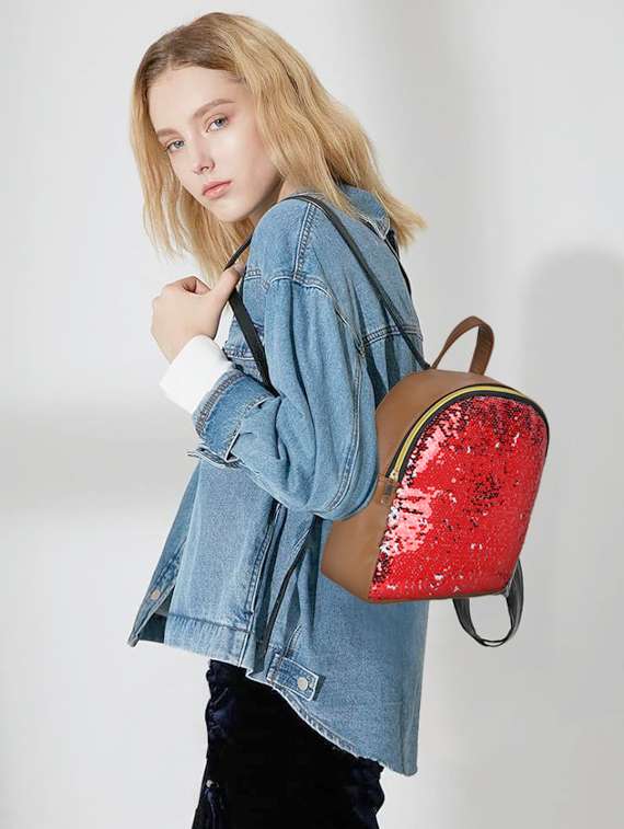 Grab this backpack from your closet and walk out. This medium-sized bag has 1 main compartment and 1 zipper pocket that can hold your wallet, keys, mobile phone other small accessories. This stylish and attractive bag has a front pocket and is made of Sequence Fabric / PU Leather material that can last for a long time and trendy used bag for college going girls. It also has a long adjustable handle to carry the bag easily. We use the soft high quality fabric with heavy duty zipper hardware for this bag, soft, comfortable, safe, fashionable and durable, odorless and high-end. When you touch the bag, the lining is durable and smooth, not easy to wear or tear.1. Large Capacity 9\" x 2.5\" x 10\" / 23cm x 6.5cm x 25.5cm (L x W x H), this sequin backpack is roomy to hold an 10.5” tablet, some books, a water bottle, an umbrella and other small items. 2. [STRUCTURES] 1 main compartment, 1 exterior zipper pocket on back & 1 inner mobile pocket . This backpack are Lightweight and great for school, outdoors, college and travelling. utility Design that girls & kids would love. Premium finish. 3. Eye-catching design: The stylish sequins backpack features a dazzling sequin exterior that instantly grabs attention and adds a touch of glamour to your outfit. Flip shimmering sequins will change colors with the swipe of your hand, which means that you can DIY unique shapes as your imagination allows, create a personalized bag! 4. Durable and reliable: Crafted with high-quality materials, this backpack is built to last. The sequins are securely attached, ensuring they won't easily come off, and the sturdy construction can withstand daily use and heavy loads. 5. Adjustable shoulder strap design: Can be adjusted to a comfortable position according to the person's height or bearing capacity to reduce the pressure on the shoulder.
