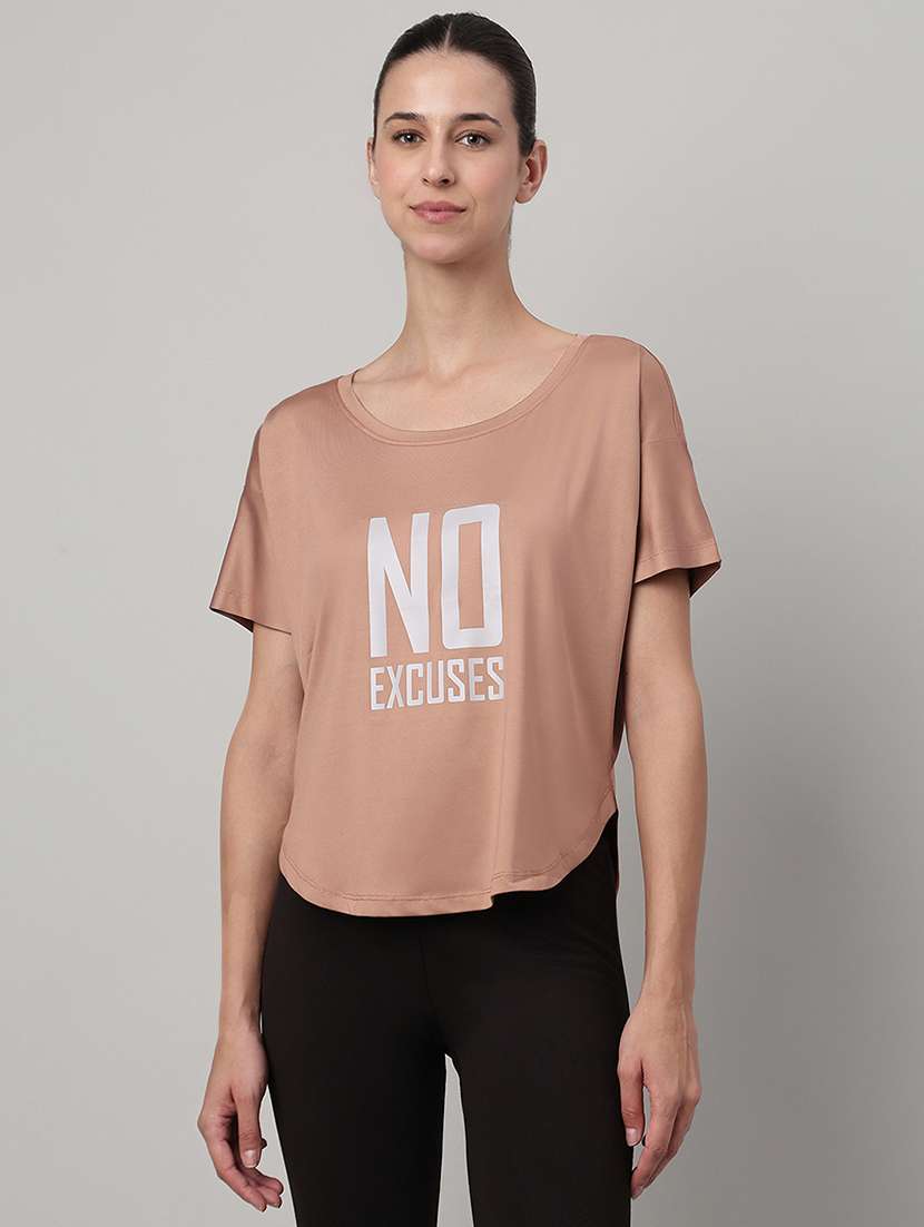 - It’s definitely not okay to be boring! So, are you ready to take things a tad bit unconventionally? Wear your tees in front print types for (active wear occasions and that too in polyester material.