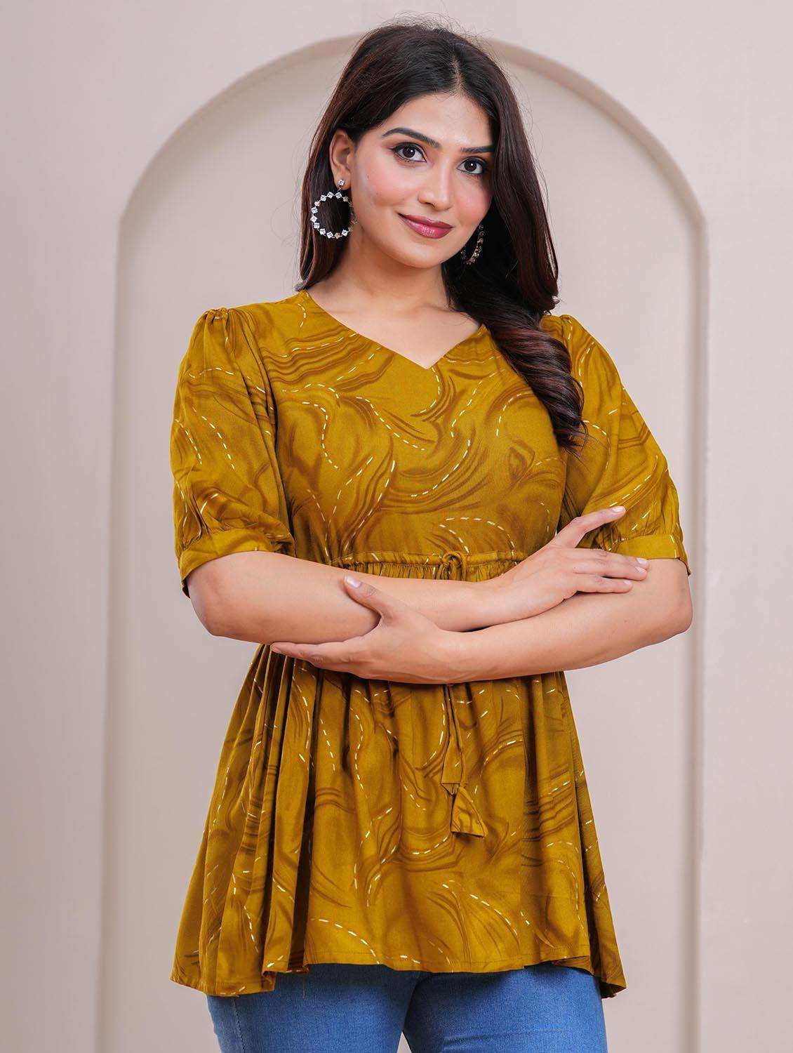 - » women printed puff sleeve peplum top