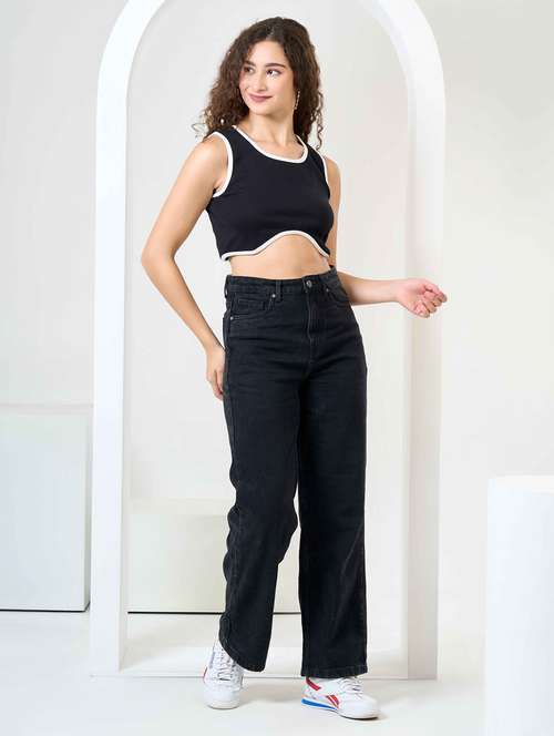 - Opt for this top made up of rib knit material and get it in a varied neck design.